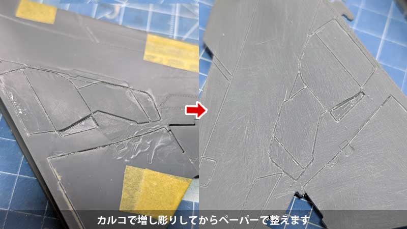 ●凸モールドをスジ彫り加工!パネルラインをくっきりさせて、よりカッコ良く!