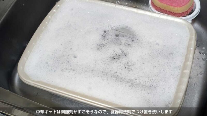 中華キットは剥離剤がパーツ表面に残っていることがほとんどなので、まずは中性洗剤で洗って剥離剤を落とします。