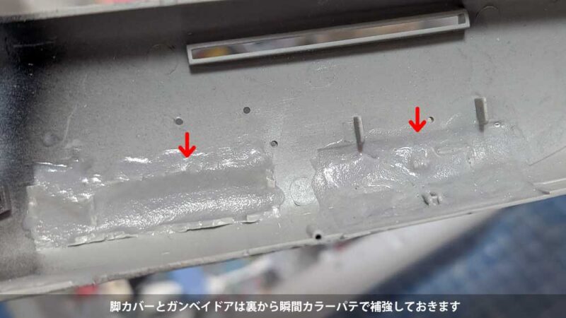 裏から瞬間カラーパテで補強しておきます、瞬間硬化スプレーを使うとすぐに固まります。