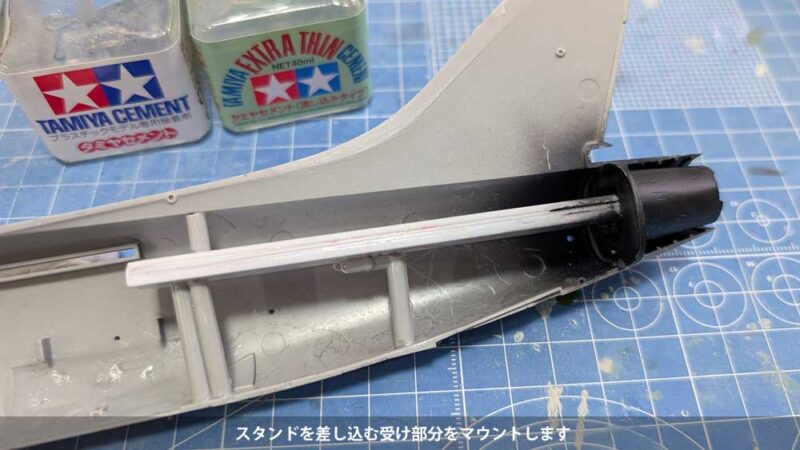 脚カバーの接着とスジ彫り