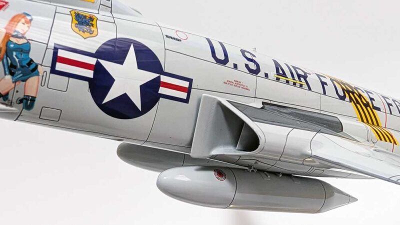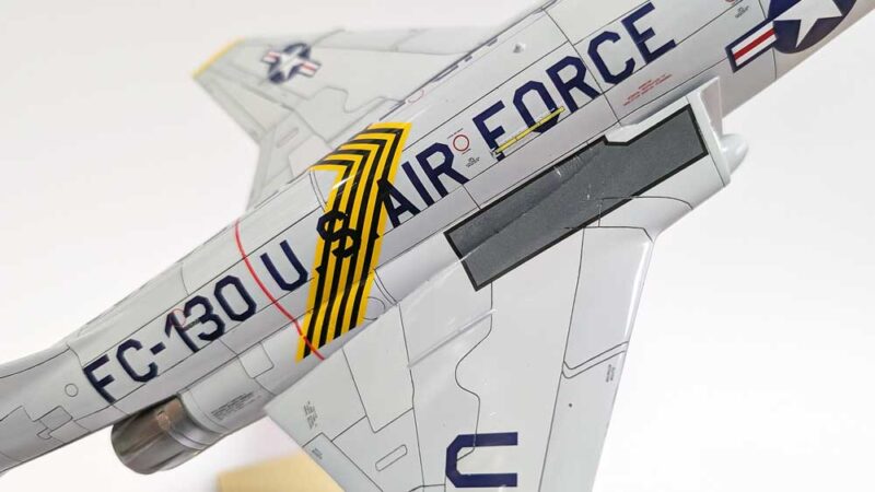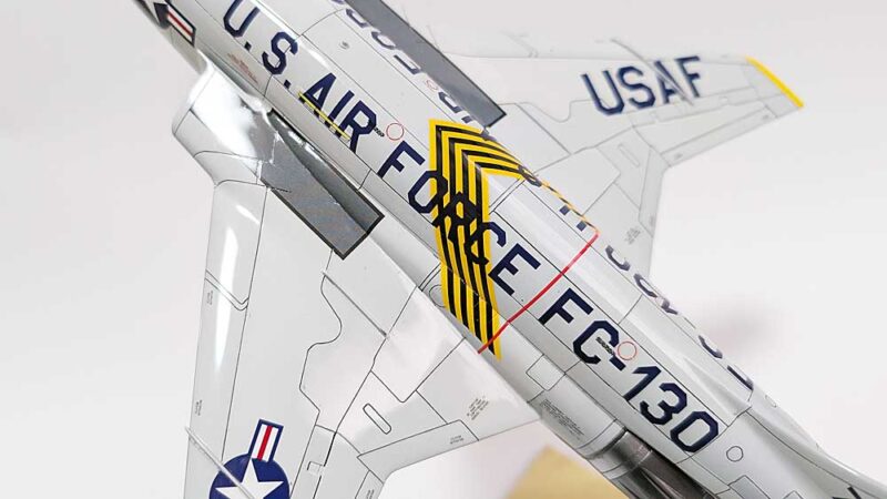 付属のデカールが扱いずらく、すぐにクシャクシャになってしまうので、F-102で余った「ファーボールエアロデザイン」の別売りデカールを使ってそれらしくでっち上げました。