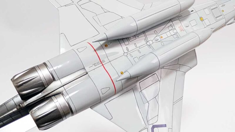 機体はファレホエアーで塗装し、水性ホビーカラーの光沢クリアーでコーティング後に研ぎ出ししています。