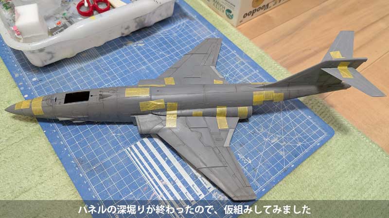 こちらのキットは凹モールドなのですが、パネルラインが浅くなっている部分が多いので、深く彫り増しします。