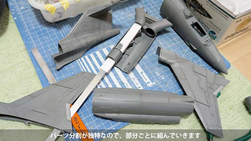 パーツ分割が独特なので少し戸惑いますが、各パーツごとに組み上げていきその後合体させます。
