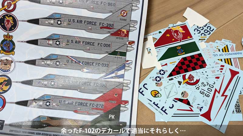 仕方ないのでF-102の余ったデカールをそれらしく貼って体裁を整えてます。