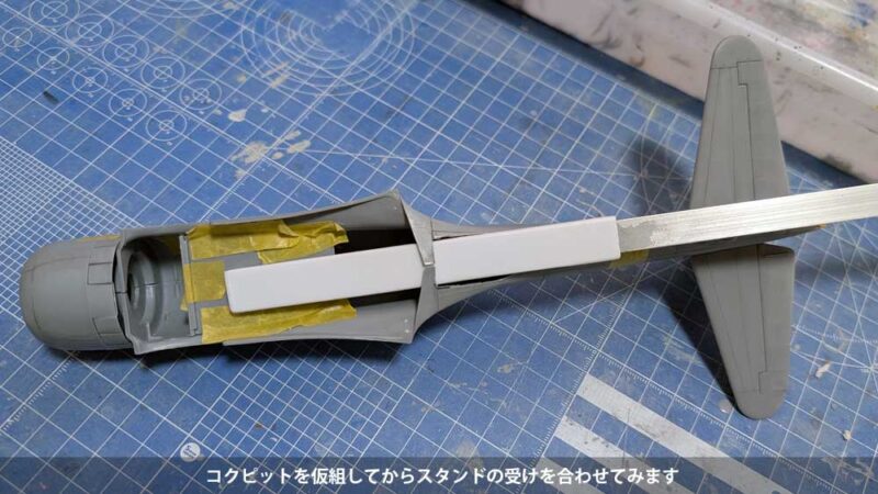「スタンド受け」の機体外にはみ出した部分は最後にカットして整形します。