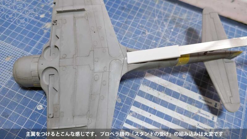 パテを入れると主翼が、かなり重くなってしまいますが仕方ありません。プラ板では上手く補強できなかったです。